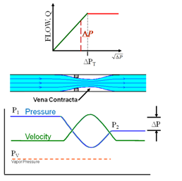 讓我們來看看里面發(fā)生了什么閥使這窒息的流動(dòng)一看。流水穿過腔收縮時(shí)(在這一點(diǎn)上的流的橫截面積是最小值),流速達(dá)到最大值。節(jié)能規(guī)定,因?yàn)樵诳s流的動(dòng)能增加到最大,勢(shì)能,在靜態(tài)壓力的形成,必須減少到最低限度。(參見圖2。)注意到,在圖中,ΔP小于ΔPT和流量不嗆。
