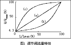 研究閥特性時(shí),總是現(xiàn)假設(shè)閥前后壓差相等,即ΔP為常數(shù),這樣可以得到調(diào)節(jié)閥的理想流量特性(圖1):(a)線性流量特性;(b)等百分比流量特性;(c)快開(kāi)流量特性。