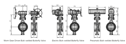| NPS | L | Worm gear actuation | Electric | Pneumatic | Weight(kg) | |||||||||||||||