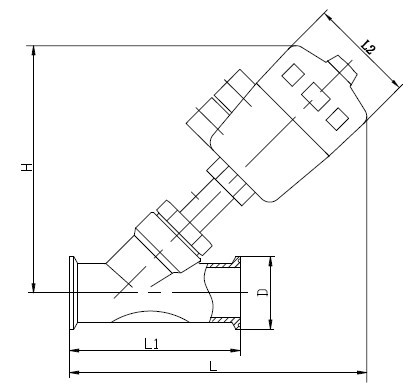 氣動(dòng)快裝角座閥外形尺寸圖: