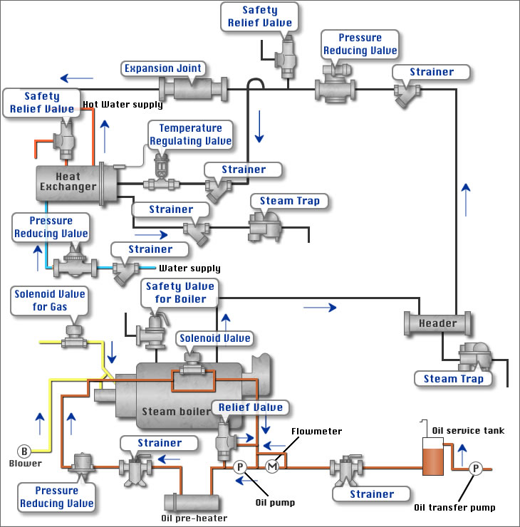 減壓閥、安全閥、疏水閥、溫控閥、電磁閥、電動(dòng)閥、自動(dòng)排氣閥、緊急切斷閥